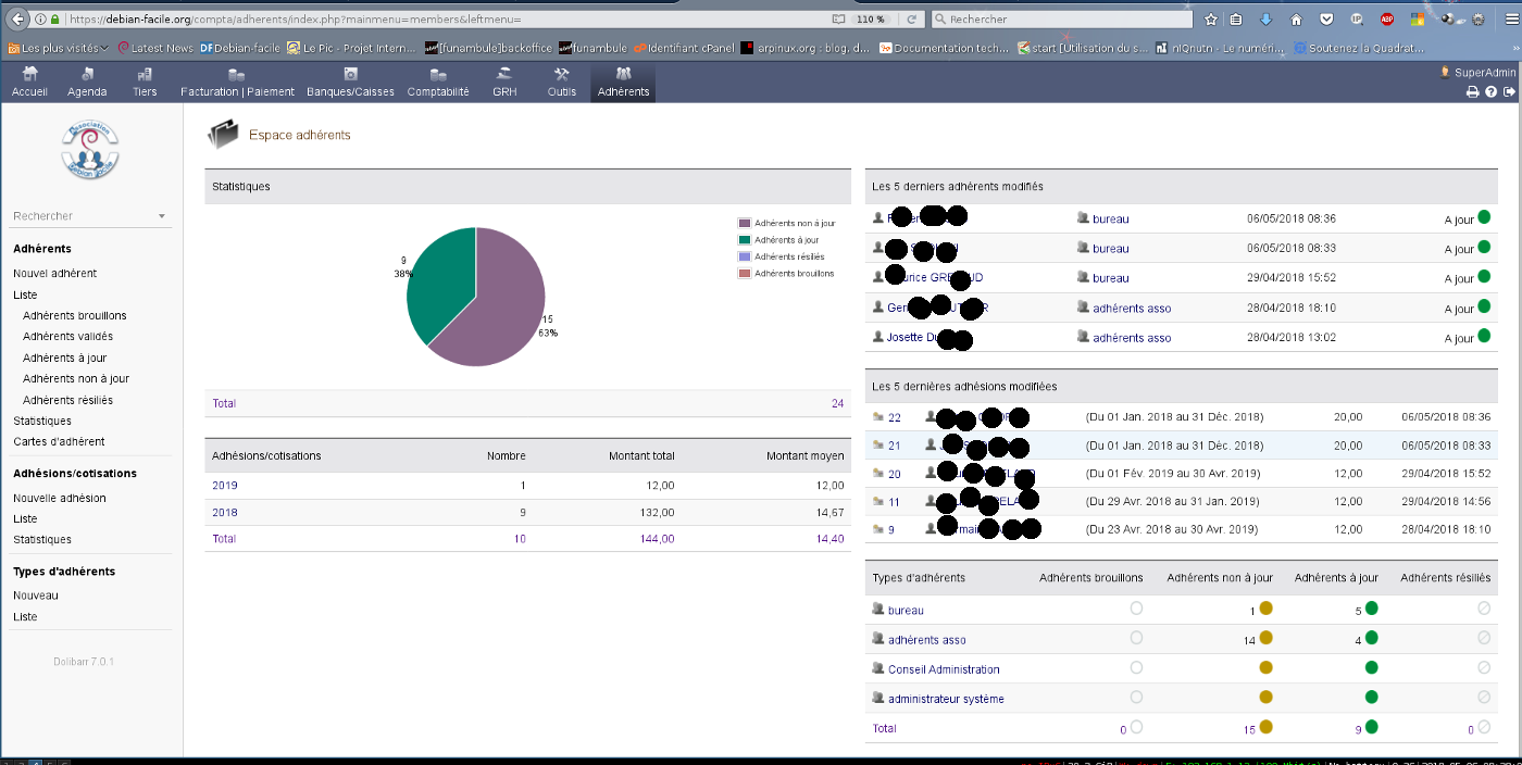 Adhérents gestion des adhérents, un chapitre sera attribué à ce poste plus loin.