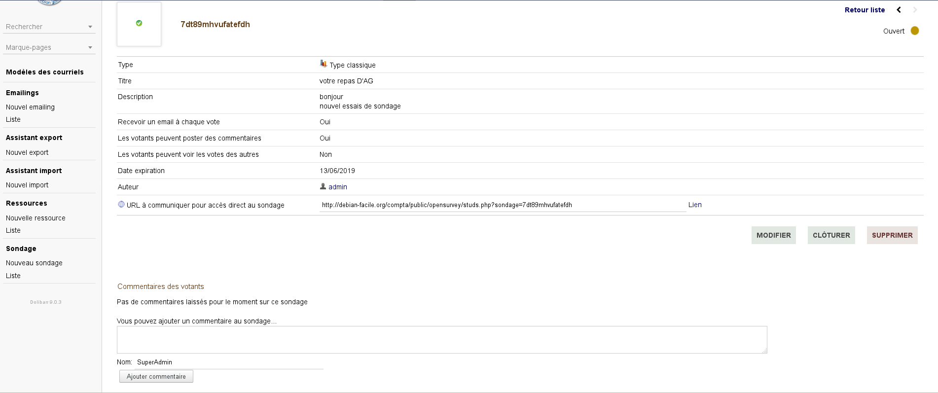 Une fois les données saisies, dolibarr vous propose un lien public.