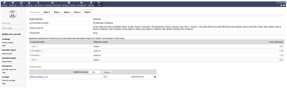 Maintenant, sélectionnez le format d'export dans la liste déroulante et cliquez sur “Générer” pour fabriquer le fichier export…
