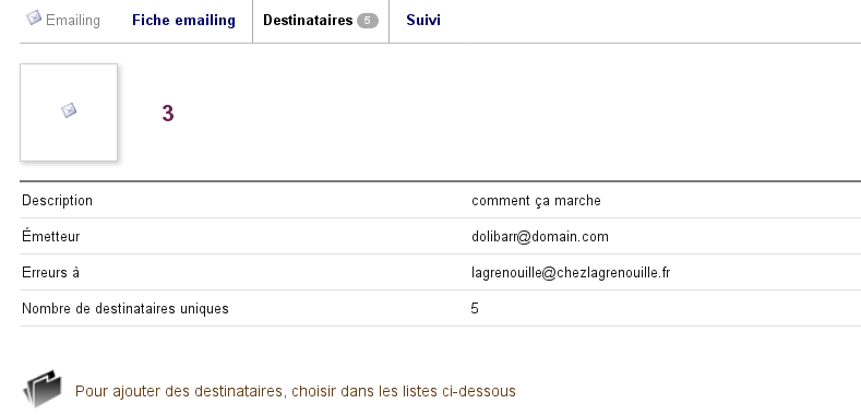 votre premier emailing est créé, aller dans liste, choisissez-le et