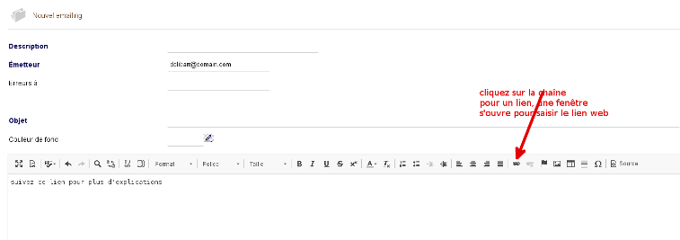 Menu Outils →Modèles des courriels →Emailings →Nouvel emailing