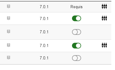 Chaque module activé se mettra en vert, il est paramétrable en cliquant sur l’icone à droite (voir l'image ci dessous)
