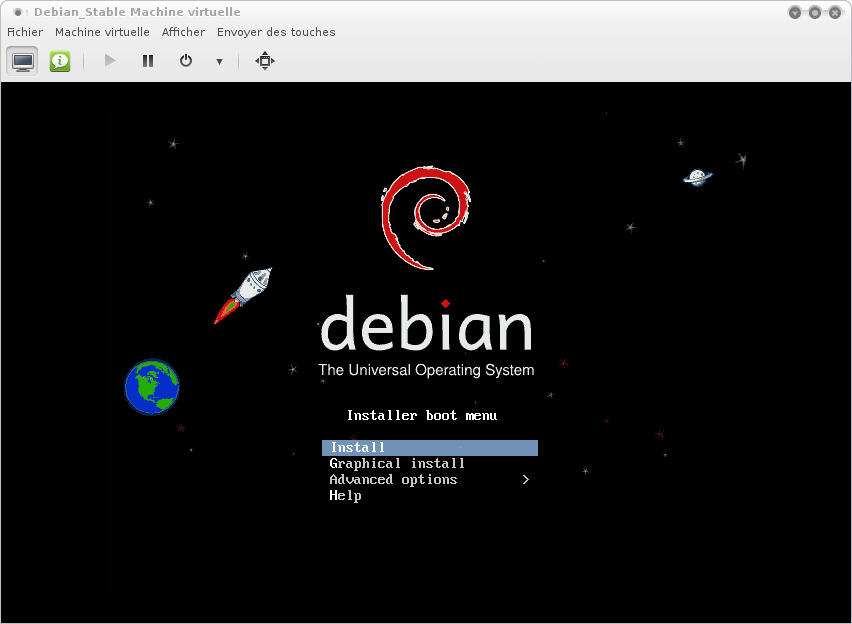 Dans notre exemple j'utilise une image ISO d'une Debian Stable (actuellement une Debian Squeeze 6.0).