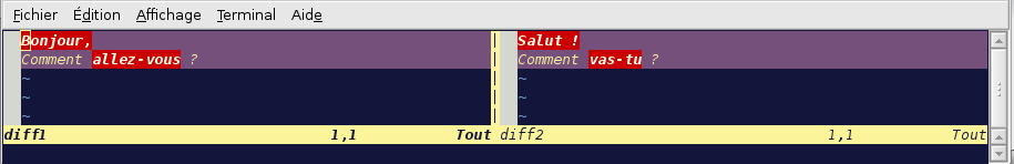 vimdiff fichier1 fichier2