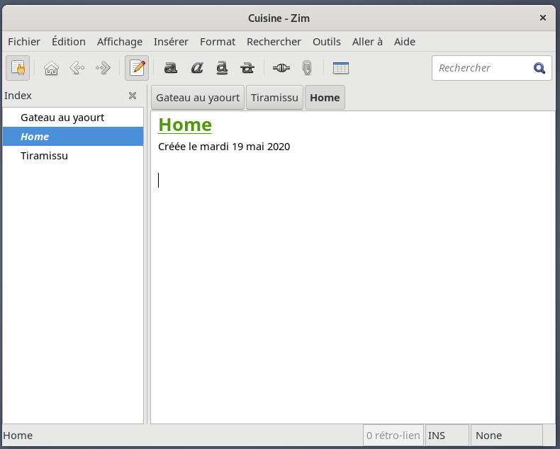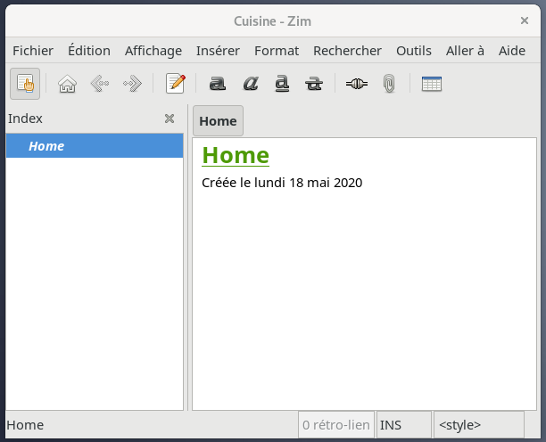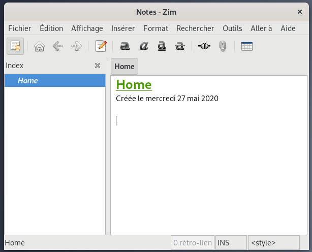 Zim est un éditeur de texte graphique utilisé pour maintenir une collection de pages wiki, des Bloc-notes.