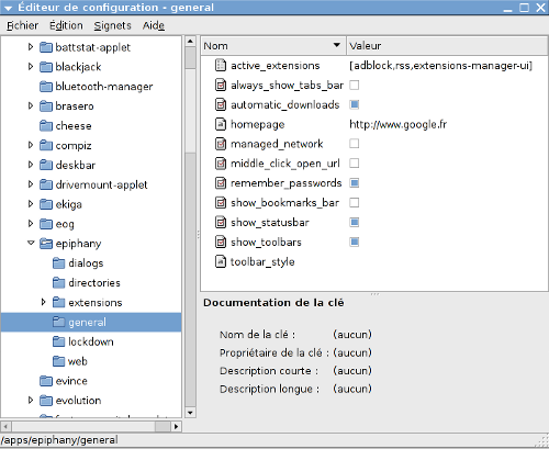 Vous vous retrouverez dans une arborescence et suivrez le chemin : /apps/epiphany/general