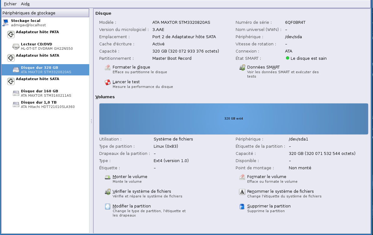 Depuis wheezy2), un utilitaire de disque en mode graphique3) pour une gestion des disques installés dans votre machine est disponible sous Gnome4).
