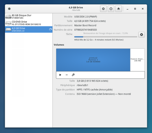 Nous restons à vous recommander d'utiliser plutôt la ligne de commande pour les opérations d'administration de vos supports.