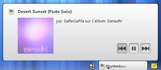 | Media player indicator | Ajoute un menu sur le tableau de bord de gnome-shell, permettant de contrôler les lecteurs multimédia compatibles MPRIS2. |