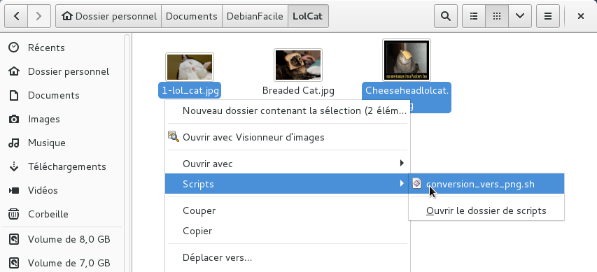 Voilà, le script est prêt, il est maintenant disponible en clic droit depuis Nautilus.