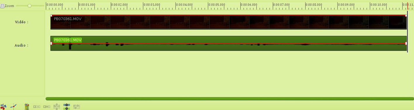 Le montage des fichiers se fait ici. On retrouve aussi les outils de manipulation dans la barre du bas. Elle est séparée en 2, vidéo et audio.