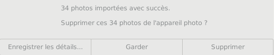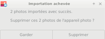 A la fin de l’importation, on décide si on souhaite conserver ou non les photos dans le téléphone.