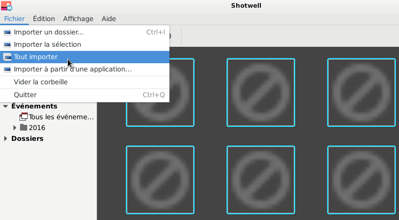 Astuce : Après avoir importé des photos d'un téléphone…, les avoir supprimé du disque dur (car le mode de classement ne convient pas par exemple), si Shotwell refuse de les importer à nouveau, il convient de supprimer le dossier ~/.local/share/shotwell (source : https://debian-facile.org/viewtopic.php?id=24931)