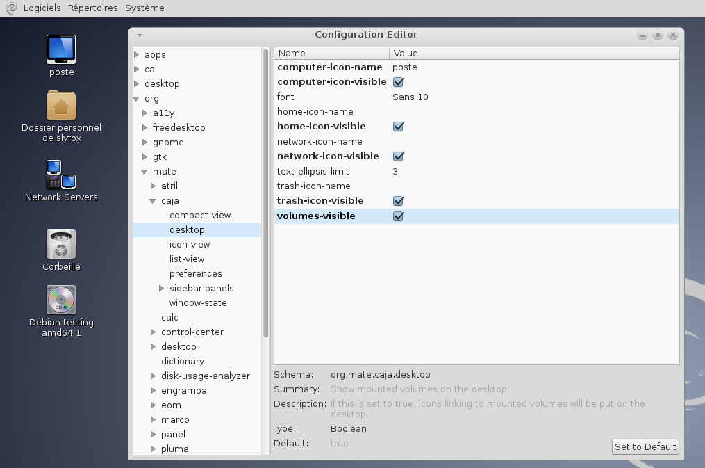 Puis suivez ce chemin : org/mate/caja/desktop