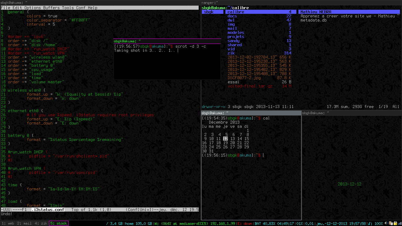 Et c'est au sein de ce fichier que tout se paramètre! Plutôt que de passer en revue les différentes sections, je vous propose mon fichier de configuration commenté (et en français s'il vous plait