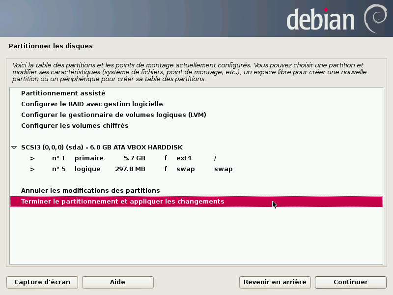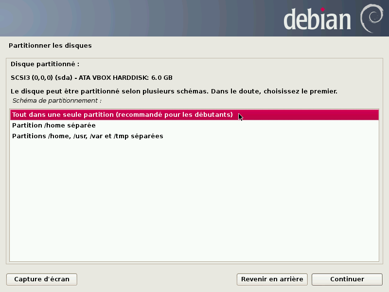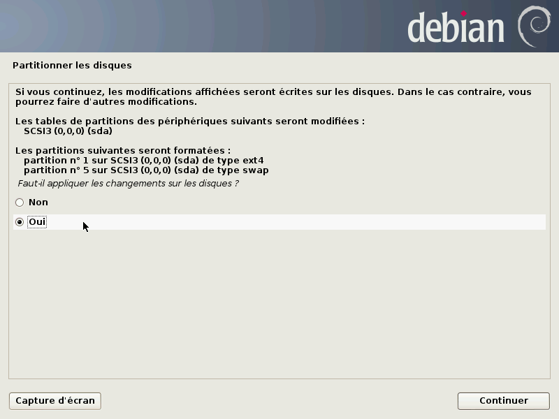 Voici un pas à pas en image pour déployer Debian simplement à l'aide de l'installeur graphique.