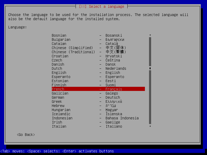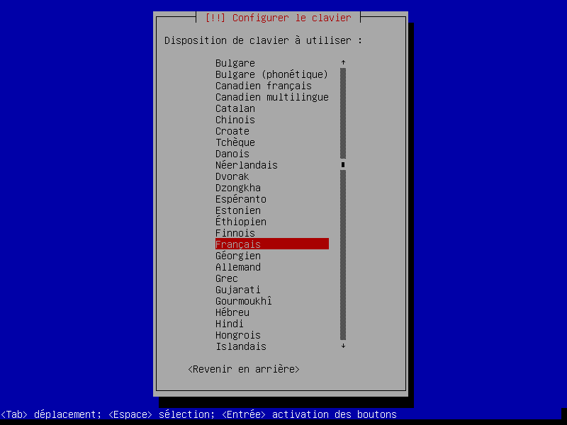 Pour le mode Install le déplacement se fait au clavier avec les flèches et la touche Tab ⇆