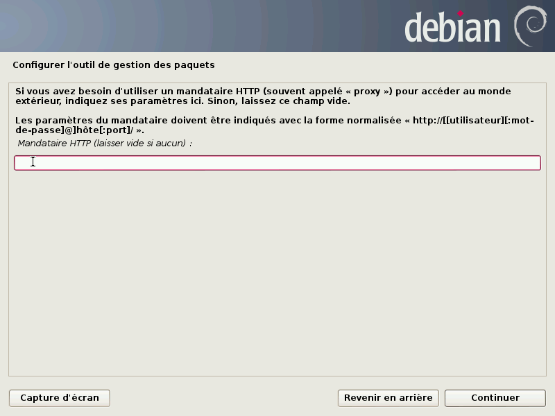 Un dépôt miroir est un serveur informatique accessible qui héberge l'ensemble des paquets Debian. Si vous ne disposez pas de tout les CD, Debian viendra piocher les logiciels ou paquets dont vous avez besoin sur des serveurs miroirs.