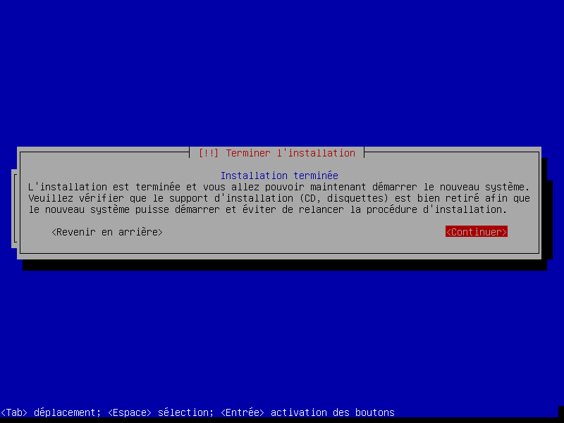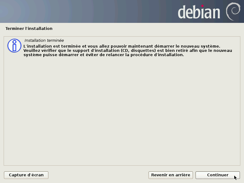 On termine en pensant à retirer le CD ou la clé USB pour éviter de retomber sur l'installeur au redémarrage.