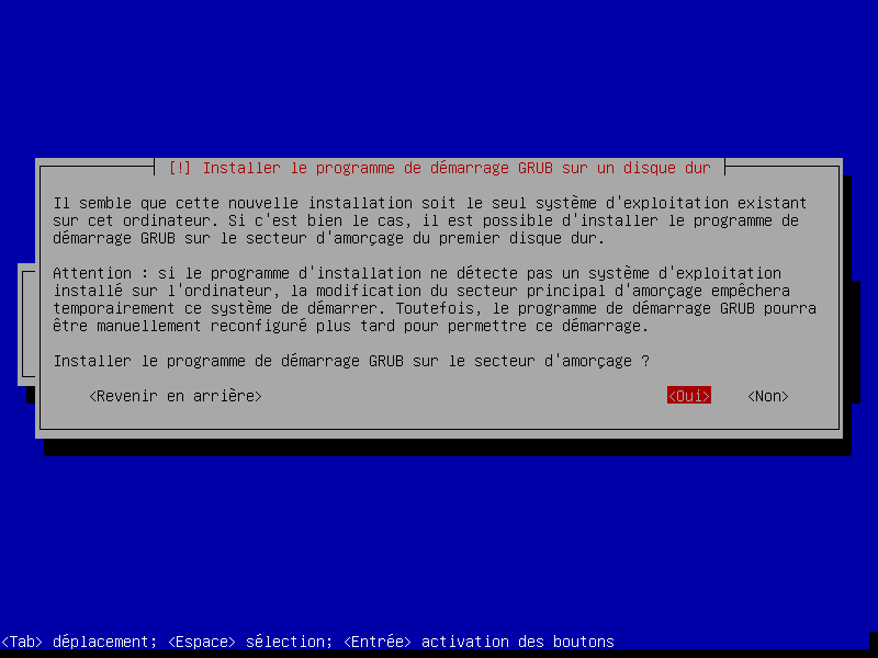 Chaque panneau de l'installeur dispose d'un texte explicatif clair. Quand vous ne savez pas, prenez les réglages par défaut. Attention tout de même au partitionnement, puisque celui pourrait écraser les données sur les disques de votre machine.