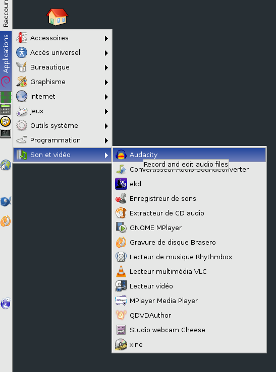 Ouvrir audacity par le Menu :
