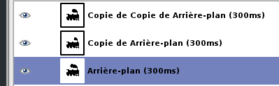 Dans la fenêtre des calques, sélectionnez le premier calque dupliqué :
