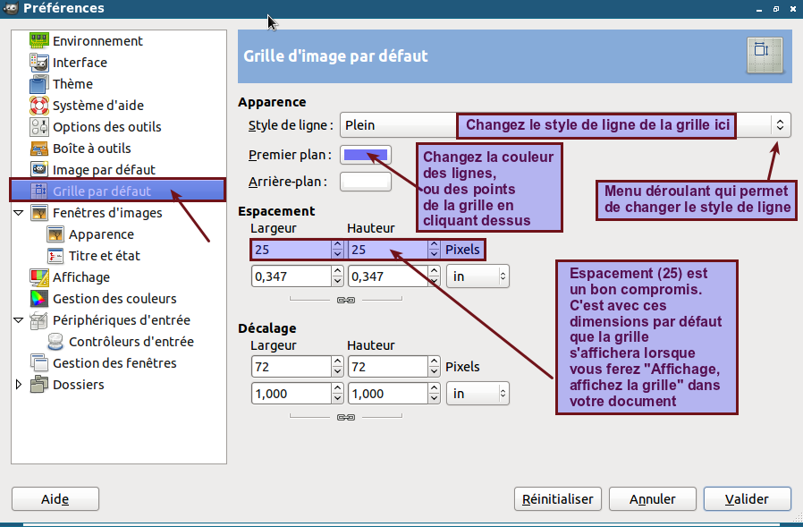 Et vous pourrez manipulez tous les réglages de la grille en conservant actifs ceux déterminés dans les Préférences pour le prochain fichier à ouvrir.