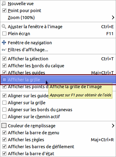 Pour afficher la grille dans un document ouvert, allez par le menu3) dans :