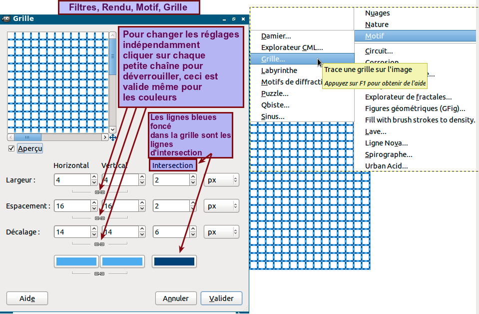 Contrairement à l'affichage de la grille normale, le filtre rendu motif grille permet de tracer réellement la grille sur votre image.