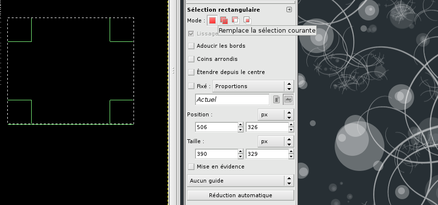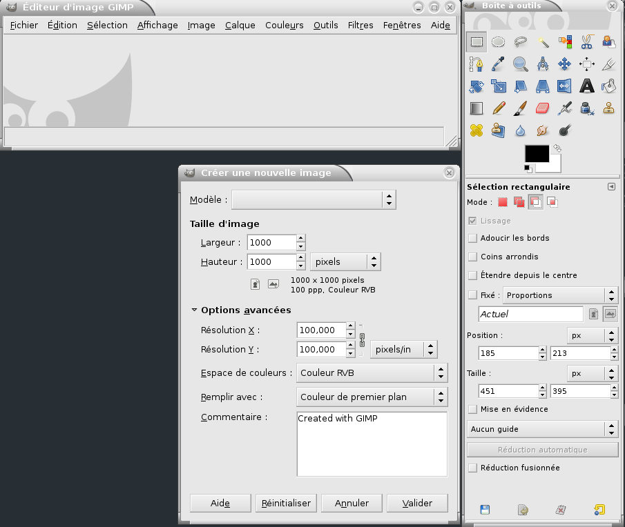 Validez et ouvrez l'outil sélection rectangulaire par le raccourci