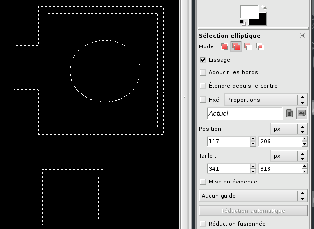 En cochant cette option, la sélection rectangulaire ou elliptique s'étend proportionnellement de part et d'autre du point de départ.