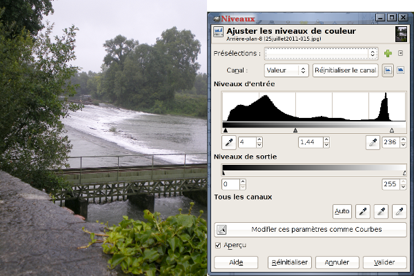 Votre photo est fade ou trop sombre, ouvrez l'outil Niveaux via le menu:
