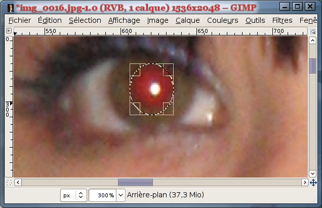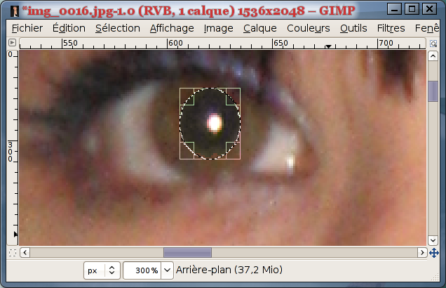 Avec l'outil sélection elliptique (raccourci clavier [e]) sélectionnez la pupille à corriger.