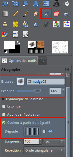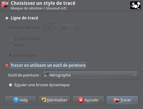 Cochez “Tracer en utilisant un outil de peinture” et choisissez “Aérographe” dans le menu déroulant et validez.