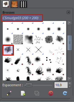 Cliquez sur la brosse CSmudge03 (200×200) dans la liste des brosses (cette brosse en est une animée).