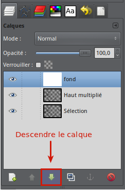 Servez-vous de la flèche pour descendre ce calque en bas de la pile.