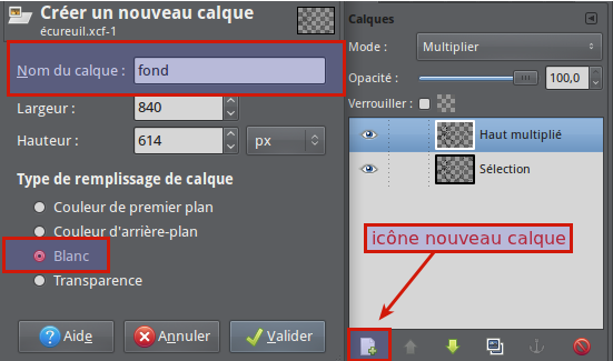 Créez un nouveau calque blanc Maj+Ctrl+N ou cliquez sur l'icône de nouveau calque et nommez-le “fond”.