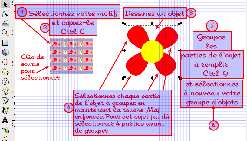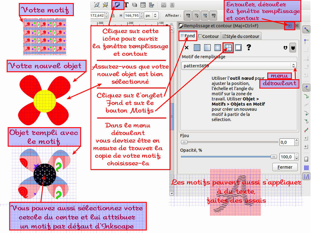 Maintenant que vous savez créer des motifs, nous allons remplir un nouvel objet avec ce motif.