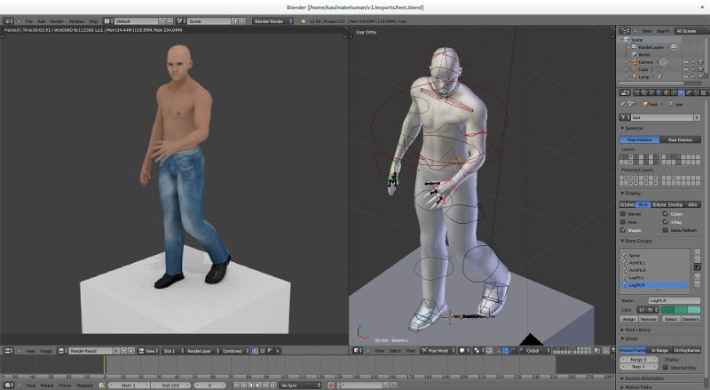 Il est possible d'exporter vers Blender, le mesh et le rig créés assez facilement. Pour cela, il faut: