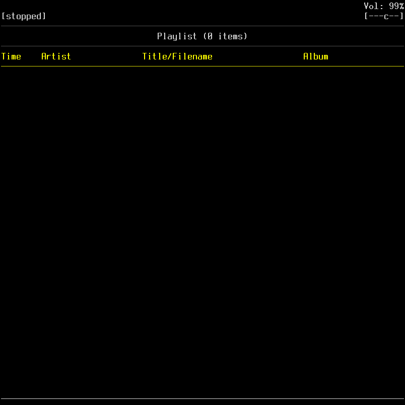 La vue correspond à la liste de lecture courante de mpd. Elle est vide au départ, sauf si vous avez déjà rempli cette liste.