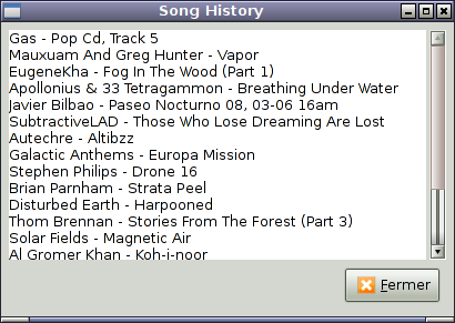 Le plus intéressant étant sans doute l'historique des titres joués :