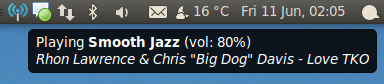 Le survol de l'icône affiche dans l'info-bulle le titre en cours de lecture :