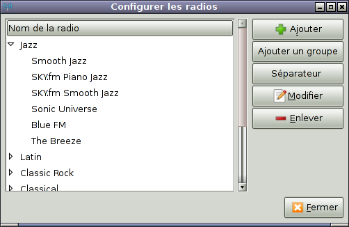 Pour des modifications plus importantes, on éditera le fichier ~/.local/share/radiotray/bookmarks.xml 2)