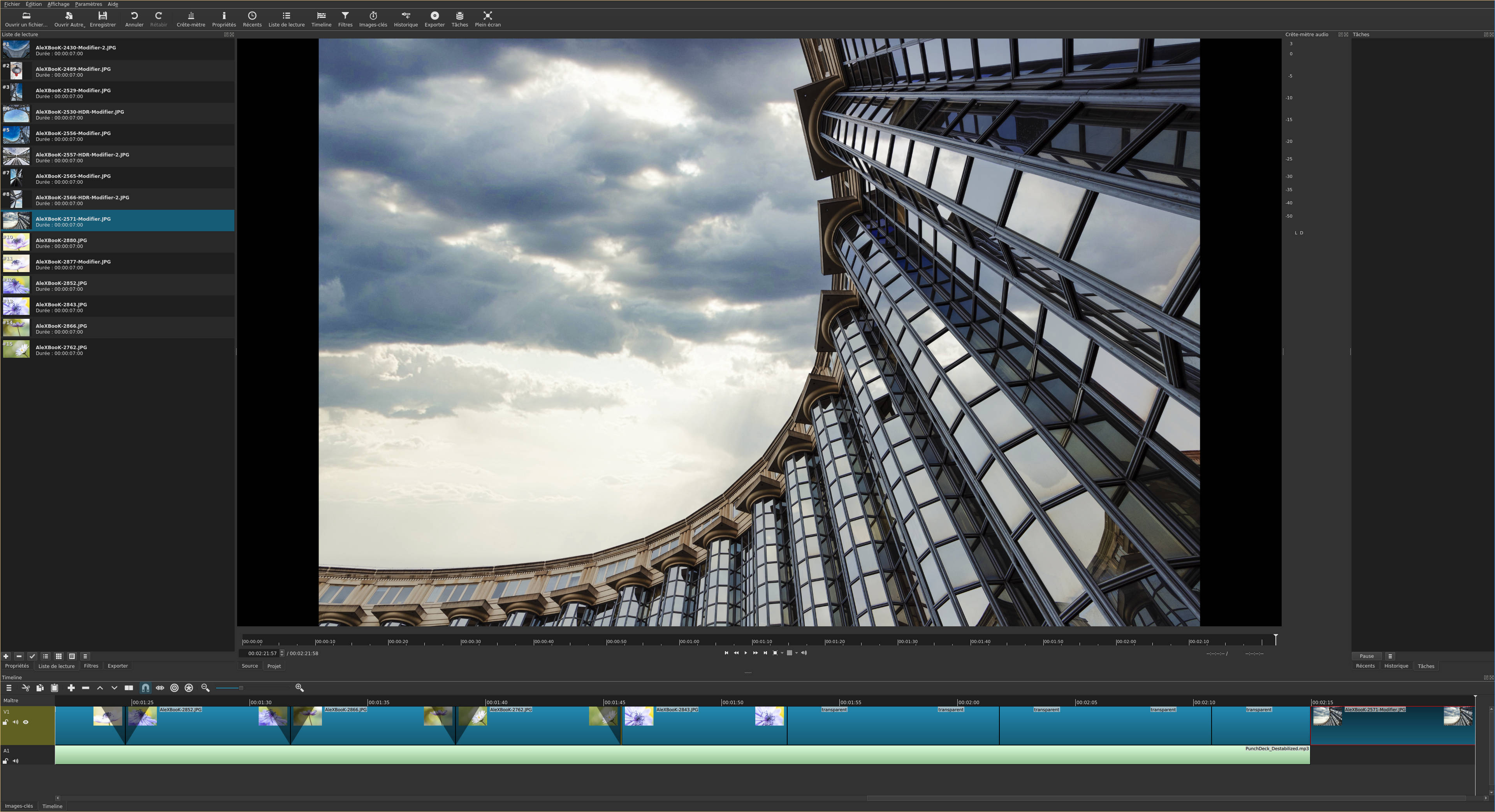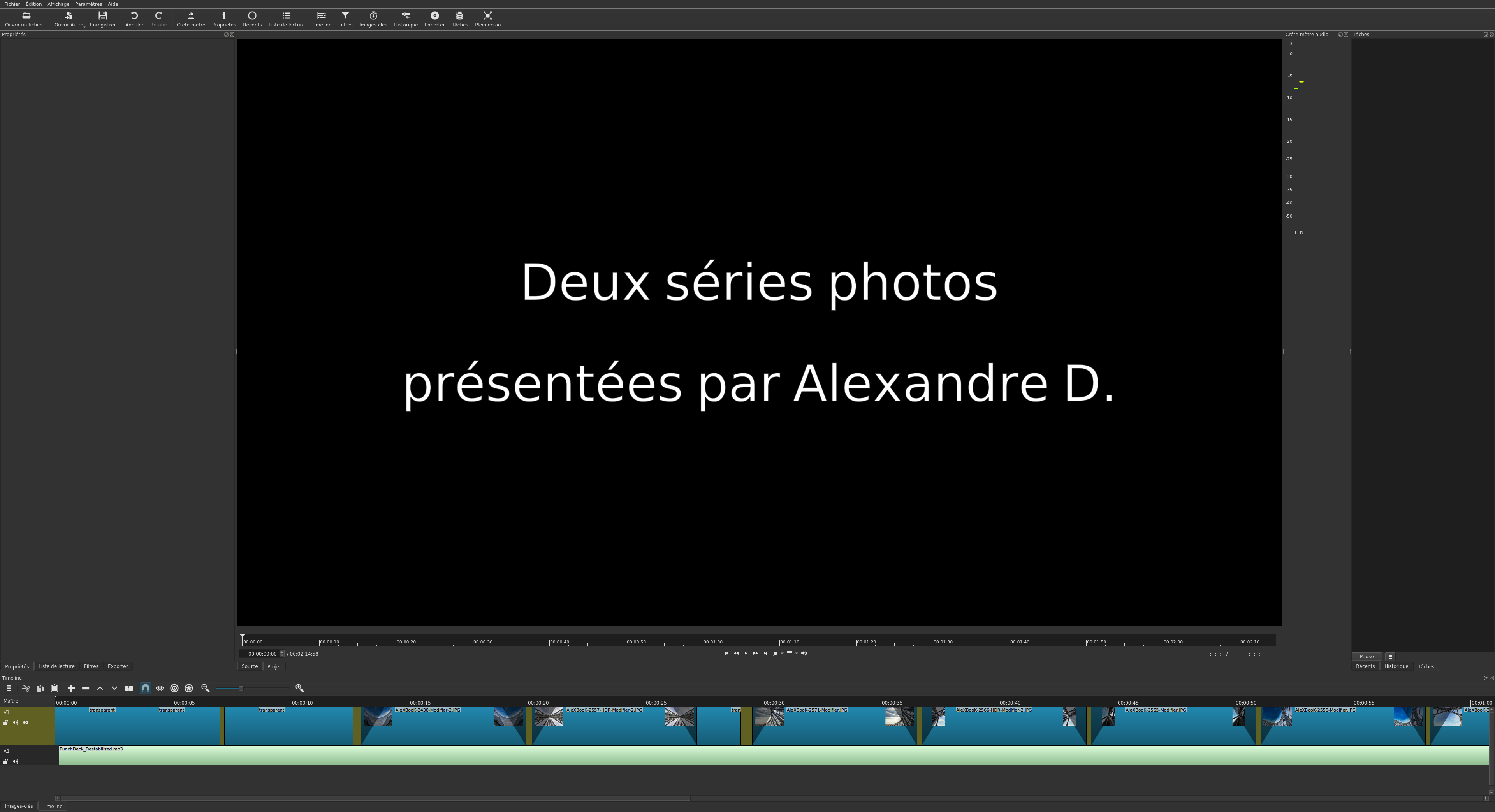 Dans mon cas j'ai créé deux pistes, une pour le son audio, et l'autre pour y déposer les photos et les textes.