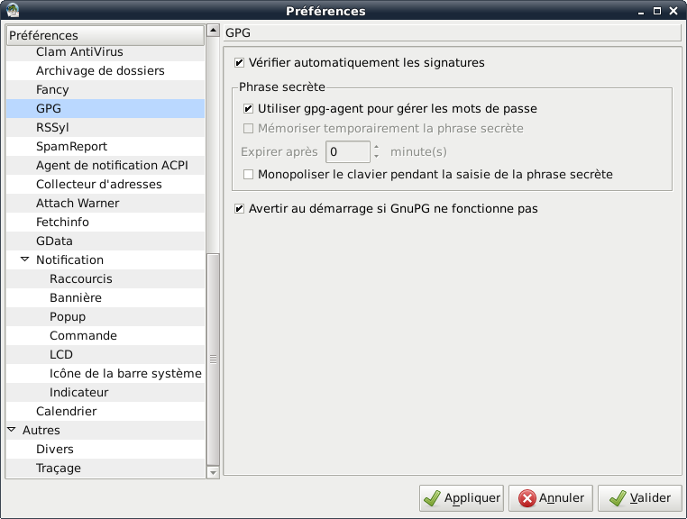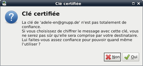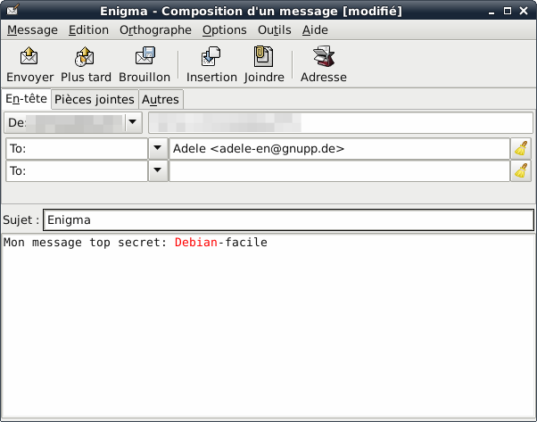 On va vérifier que la signature et le chiffrement fonctionnent correctement. Pour cela, le plus simple est de s'envoyer un courriel chiffré et signé.
