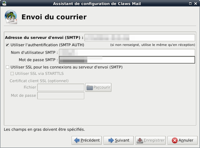 Lors du premier lancement, Claws Mail propose un assistant de configuration pour se connecter à sa messagerie.