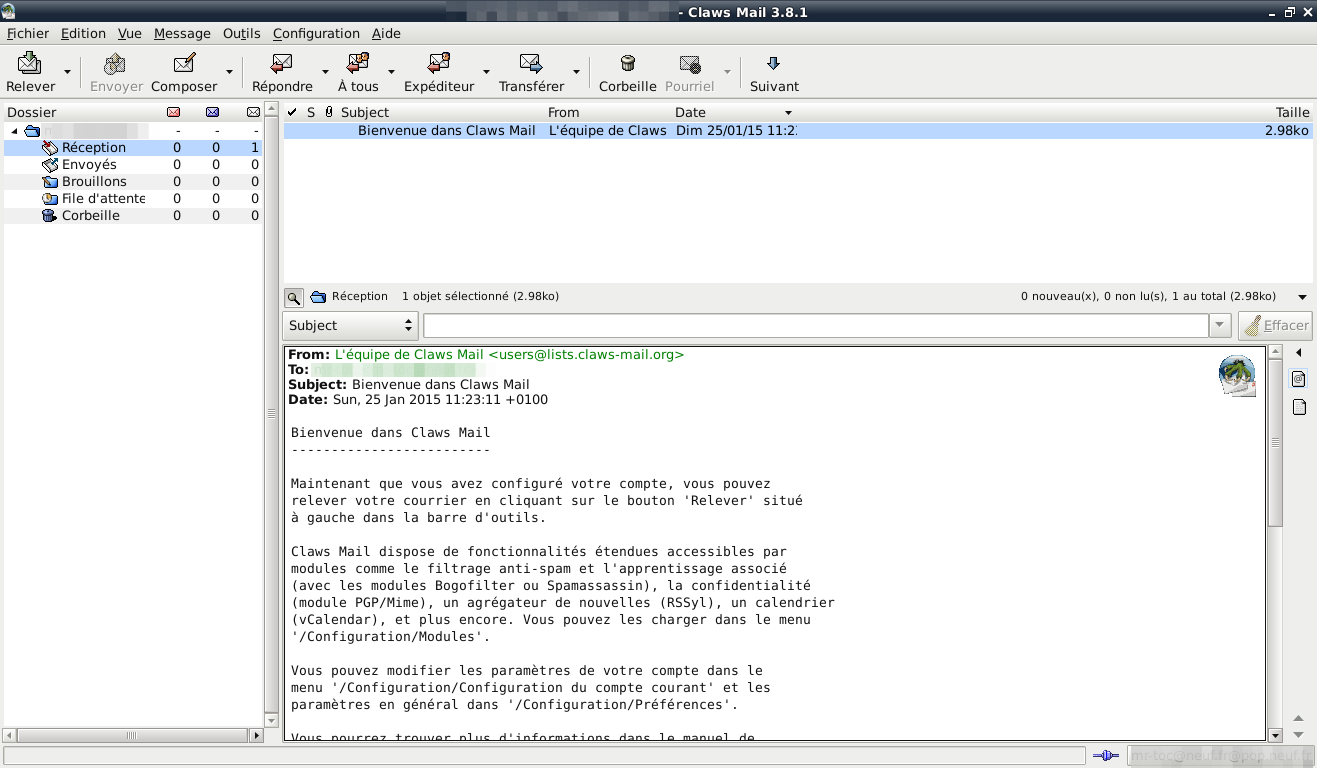 Claws Mail propose les fonctions principales d'un client de messagerie :