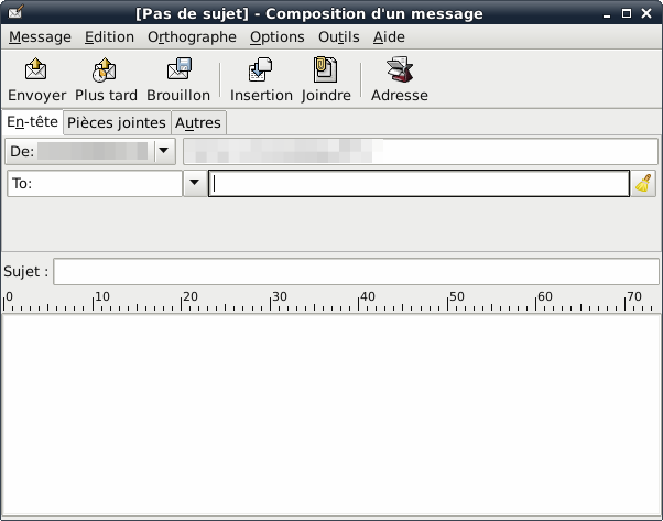 L'édition du courriel se fait simplement en ajoutant le destinataire, en indiquant le sujet du message et en tapant le contenu de la conversation (uniquement en texte brut).