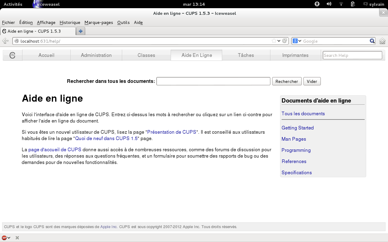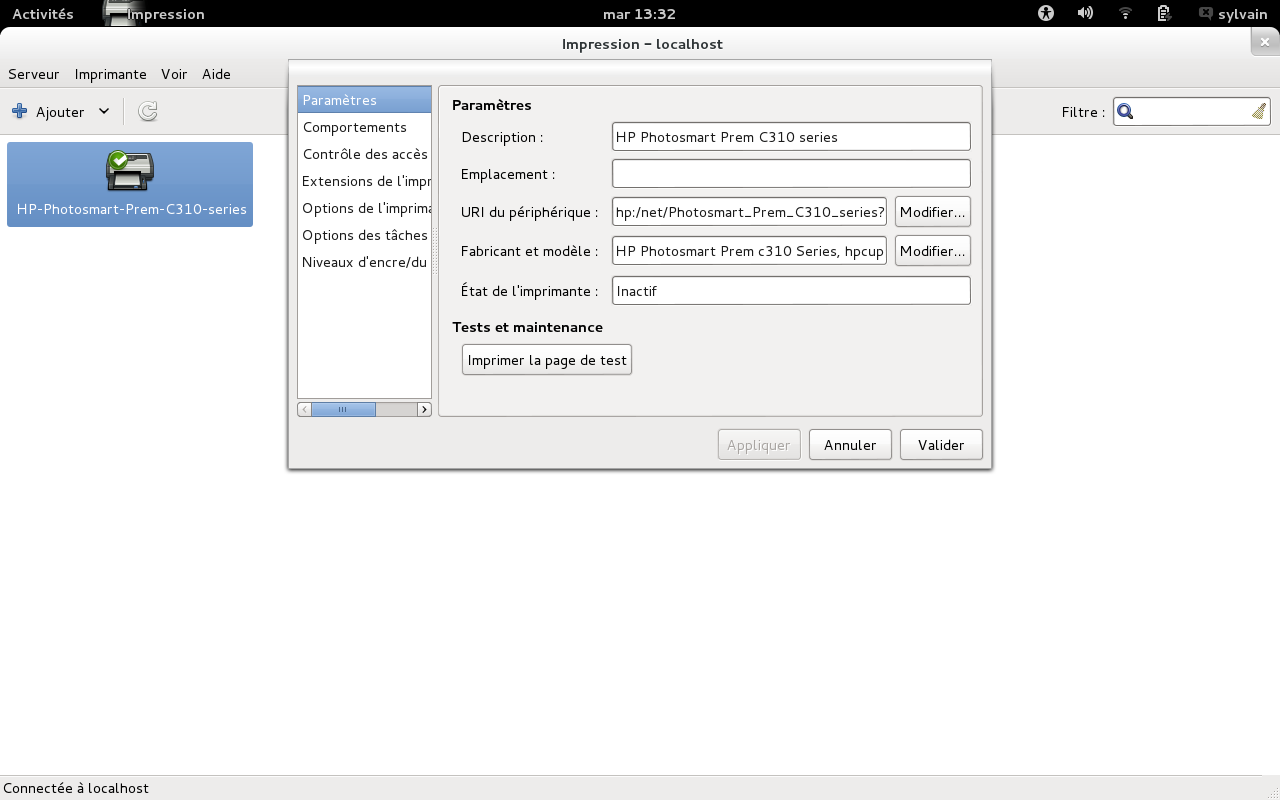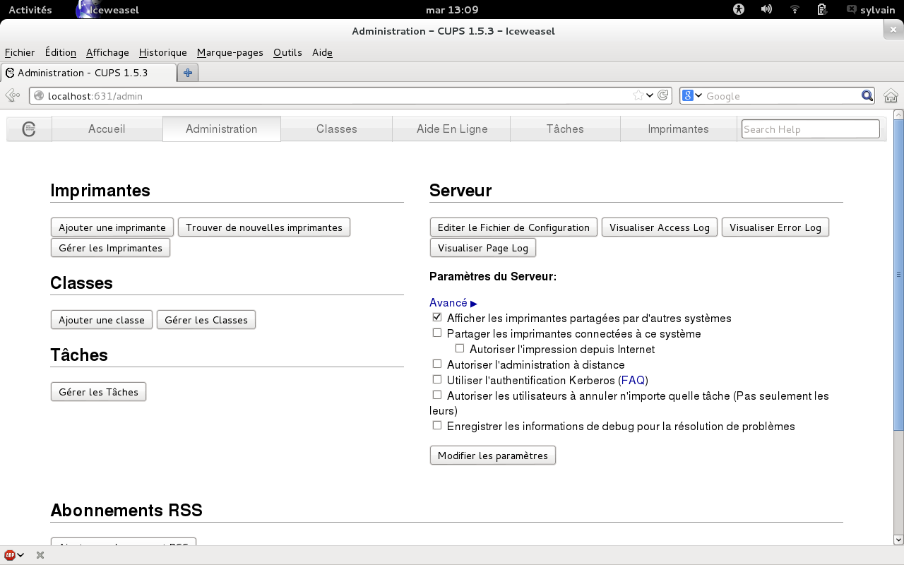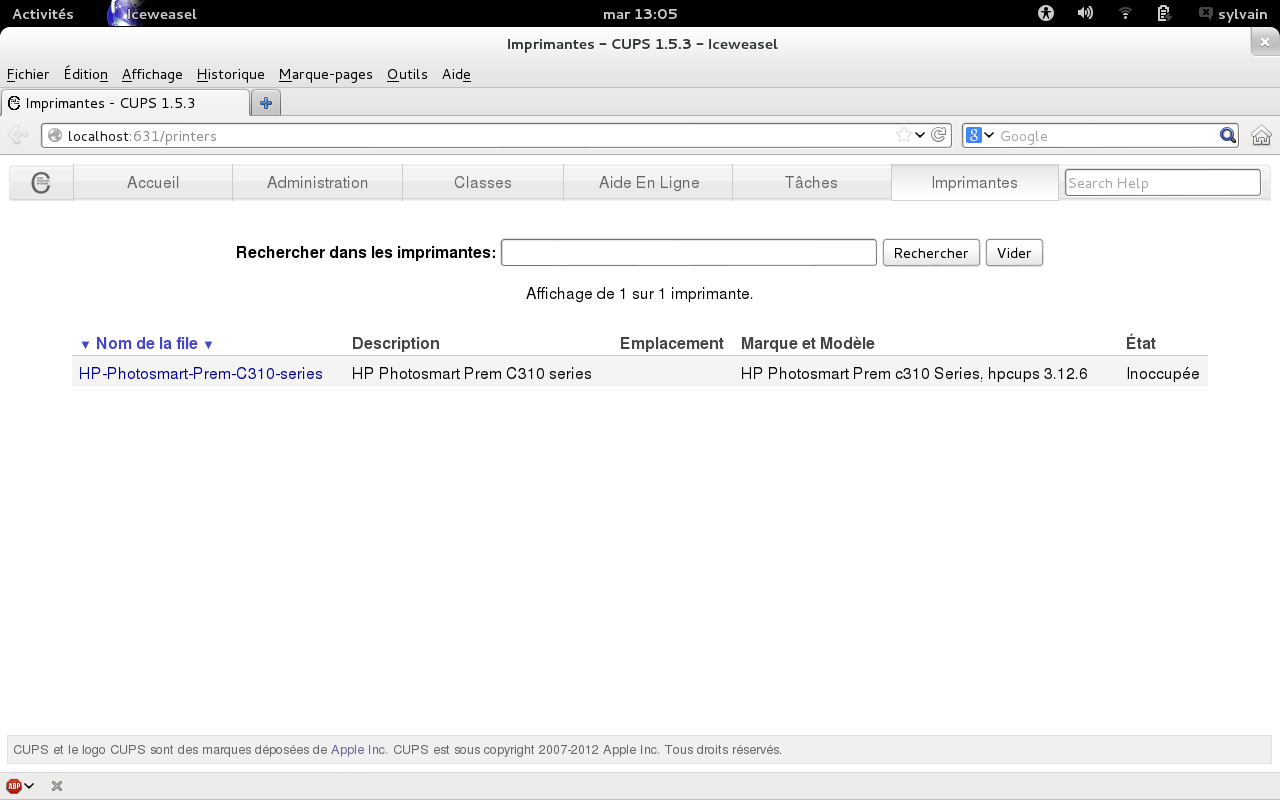 Maintenant que l'imprimante est installée, passons à l'administration proprement dite :