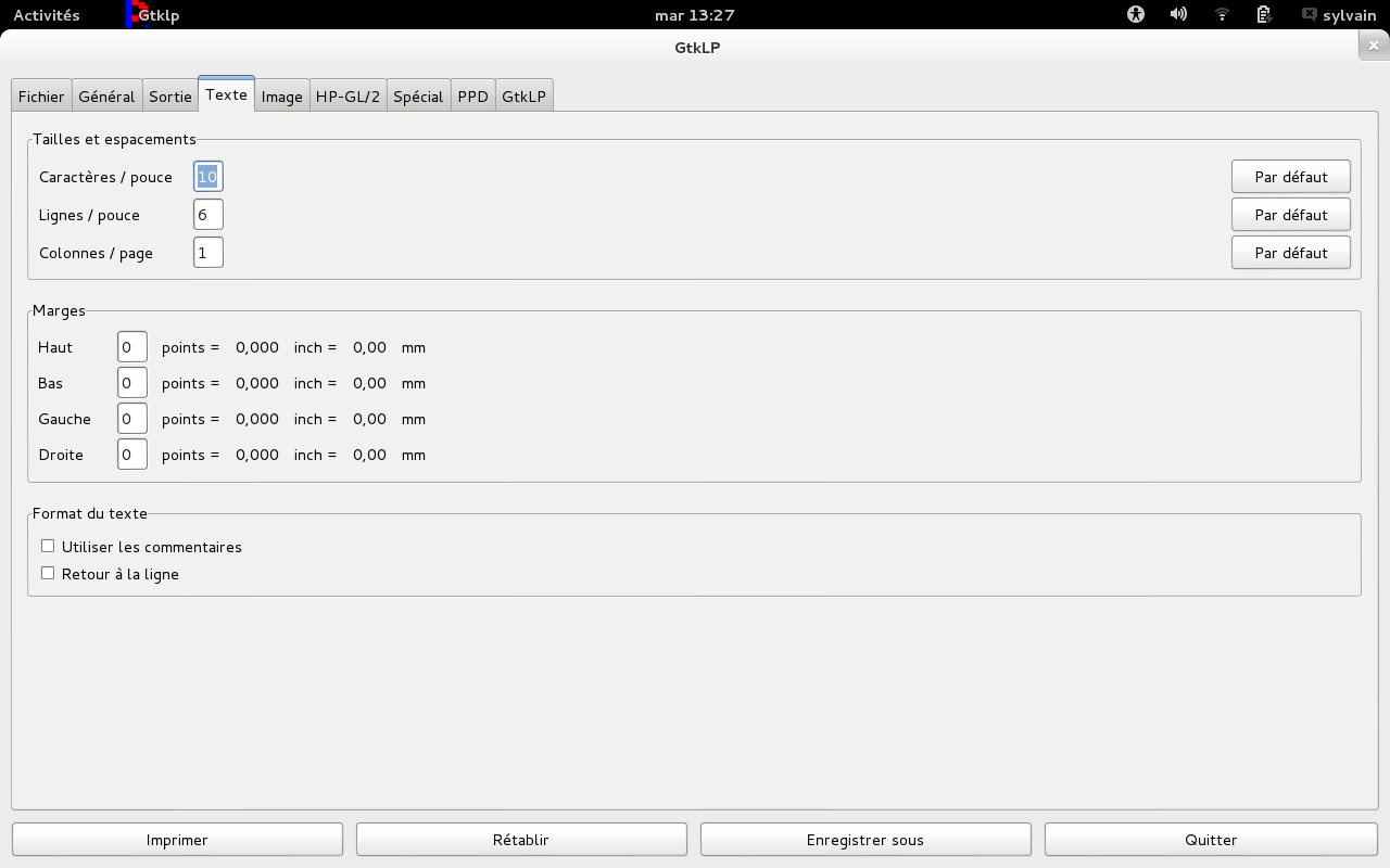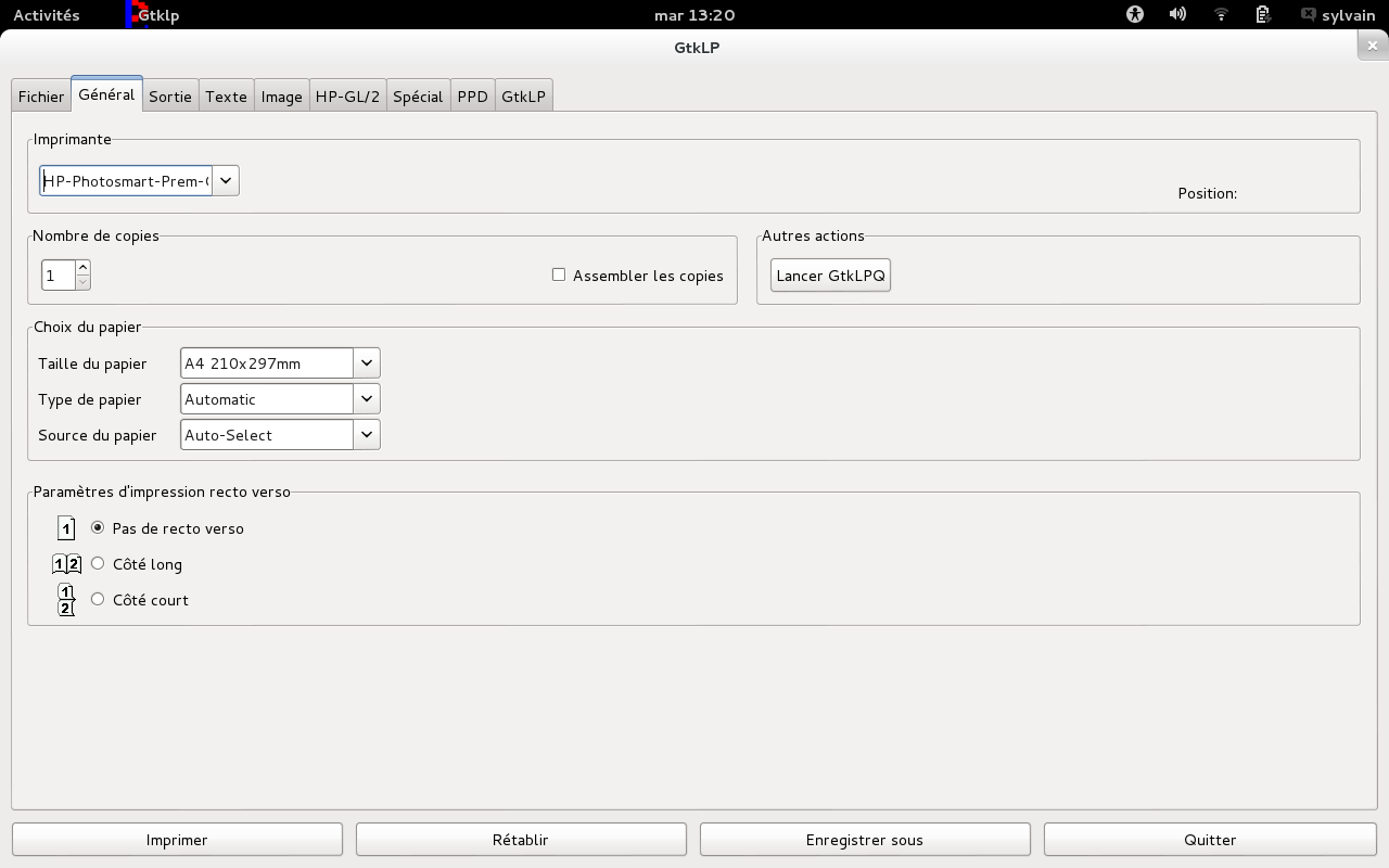 L'imprimante standard peut-être outrepassée par l'utilisateur au moyen de la commande lpoptions.